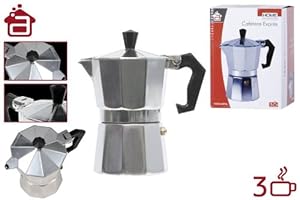 CAFETIERE ITALIENNE 3 Tasses Veritable cafetiere italienne qui vous permettra de préparer des cafés au goût vraiment unique, en un minimum de temps. Cafetière italienne en aluminium Capacité : 3 tasses Manche en bakélite noire Fonctionne sur toux feux (gaz, plaque électrique, cuisinière à bois...) sauf induction